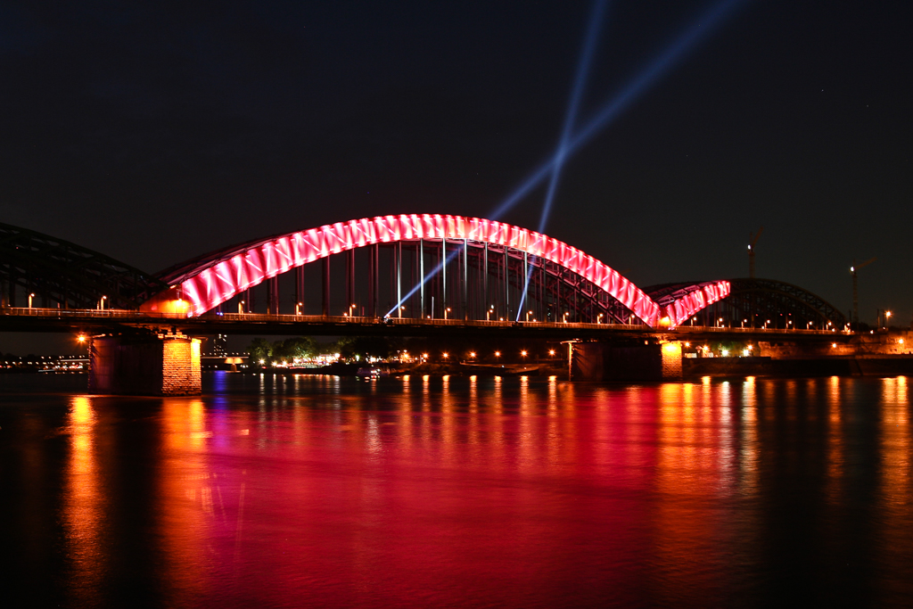 Schreibe die erste Bewertung zu “Wandbild Köln Hohenzollernbrücke beleuchtet bei Nacht”